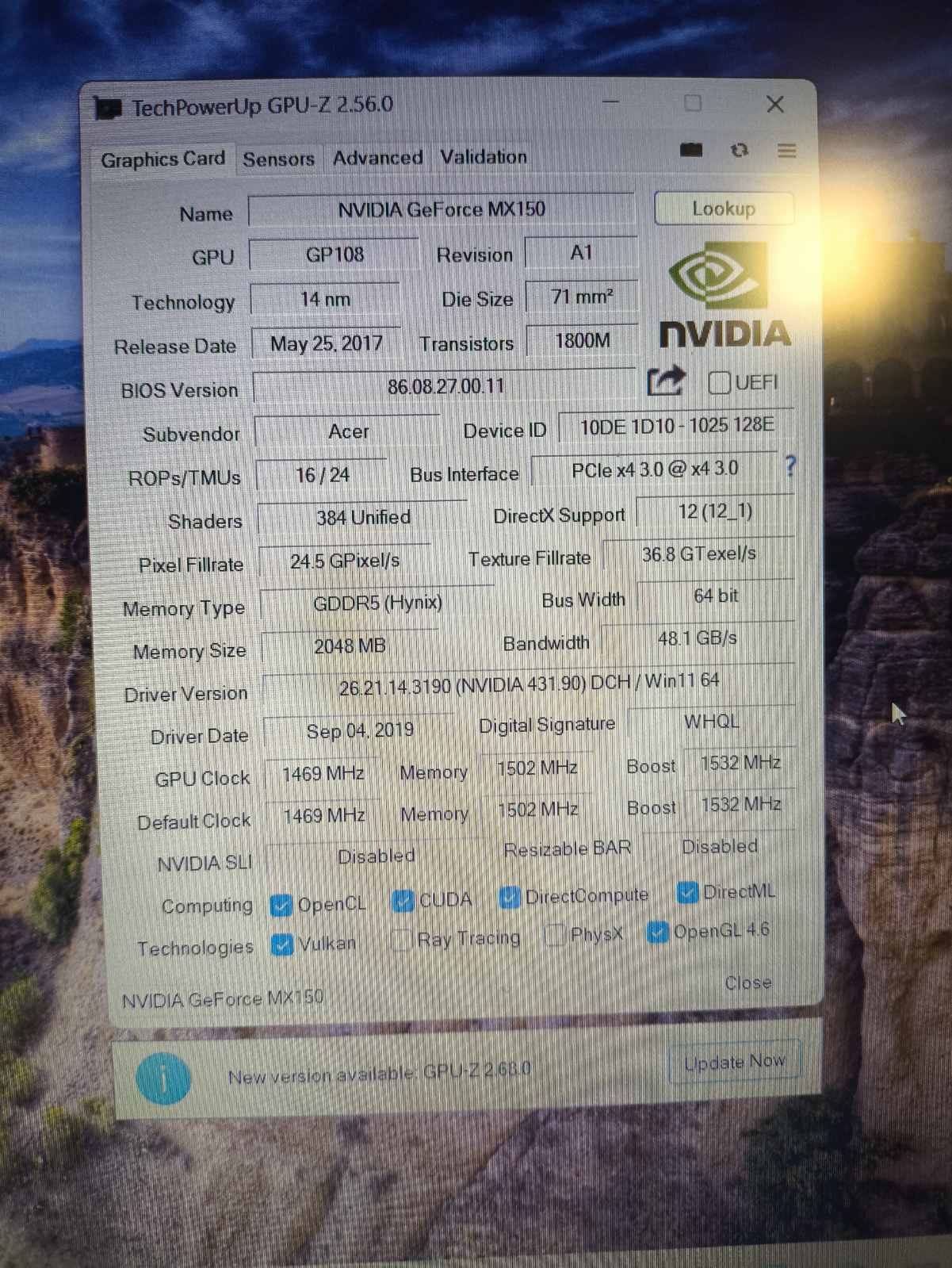 Intel UHD 620, Nvidia MX 150 2GB GDDR5