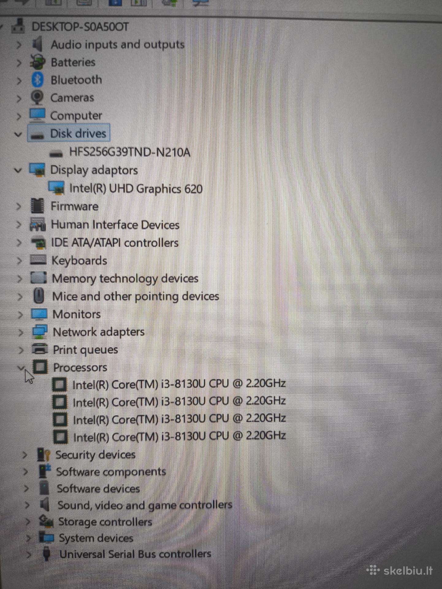 Procesorius Intel i3-8130U 2.2GHz, Max turbo dažnis 3.4GHz