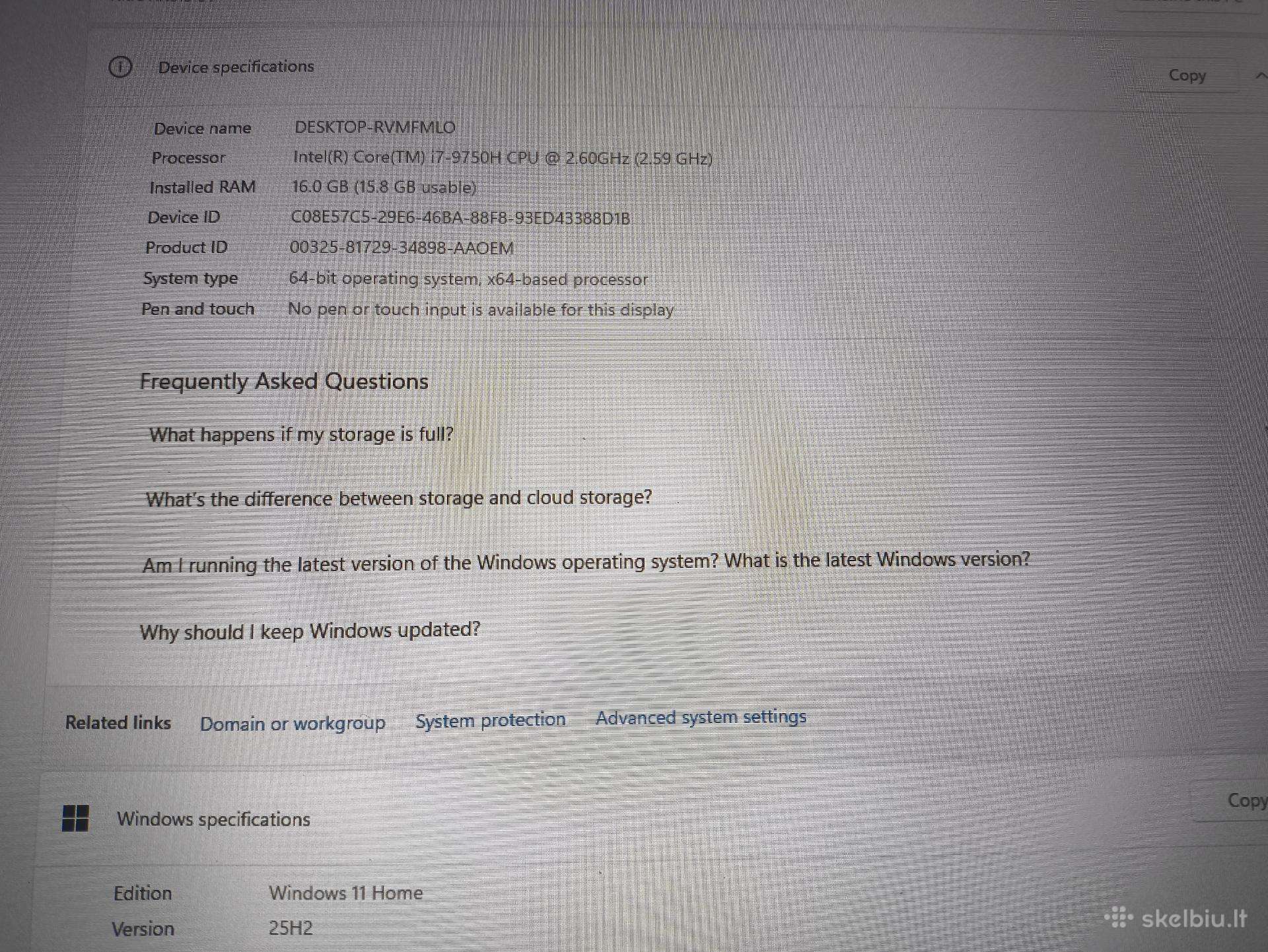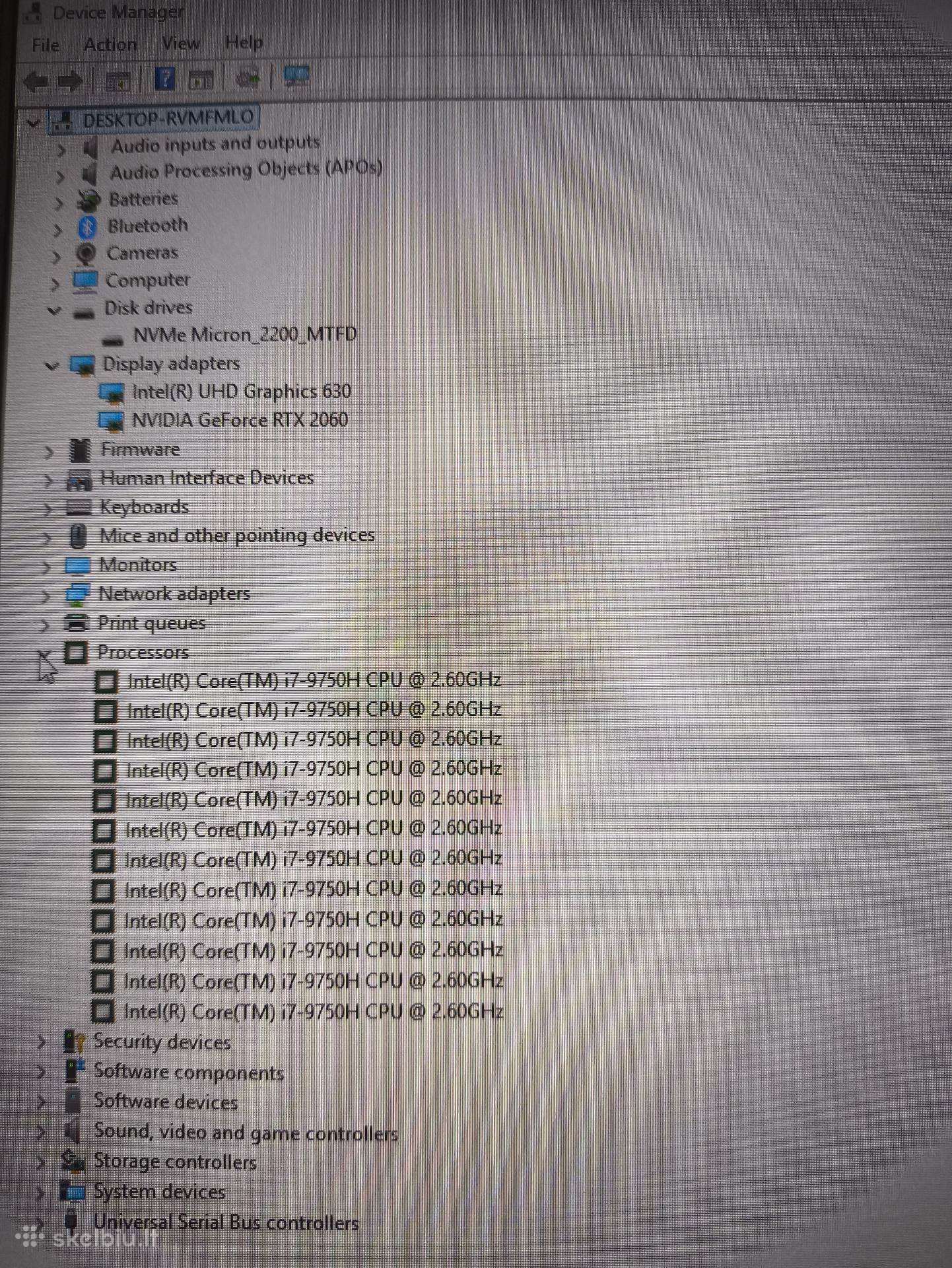 Procesorius i7-9750H 2.6GHz, Max turbo dažnis 4.5GHz
