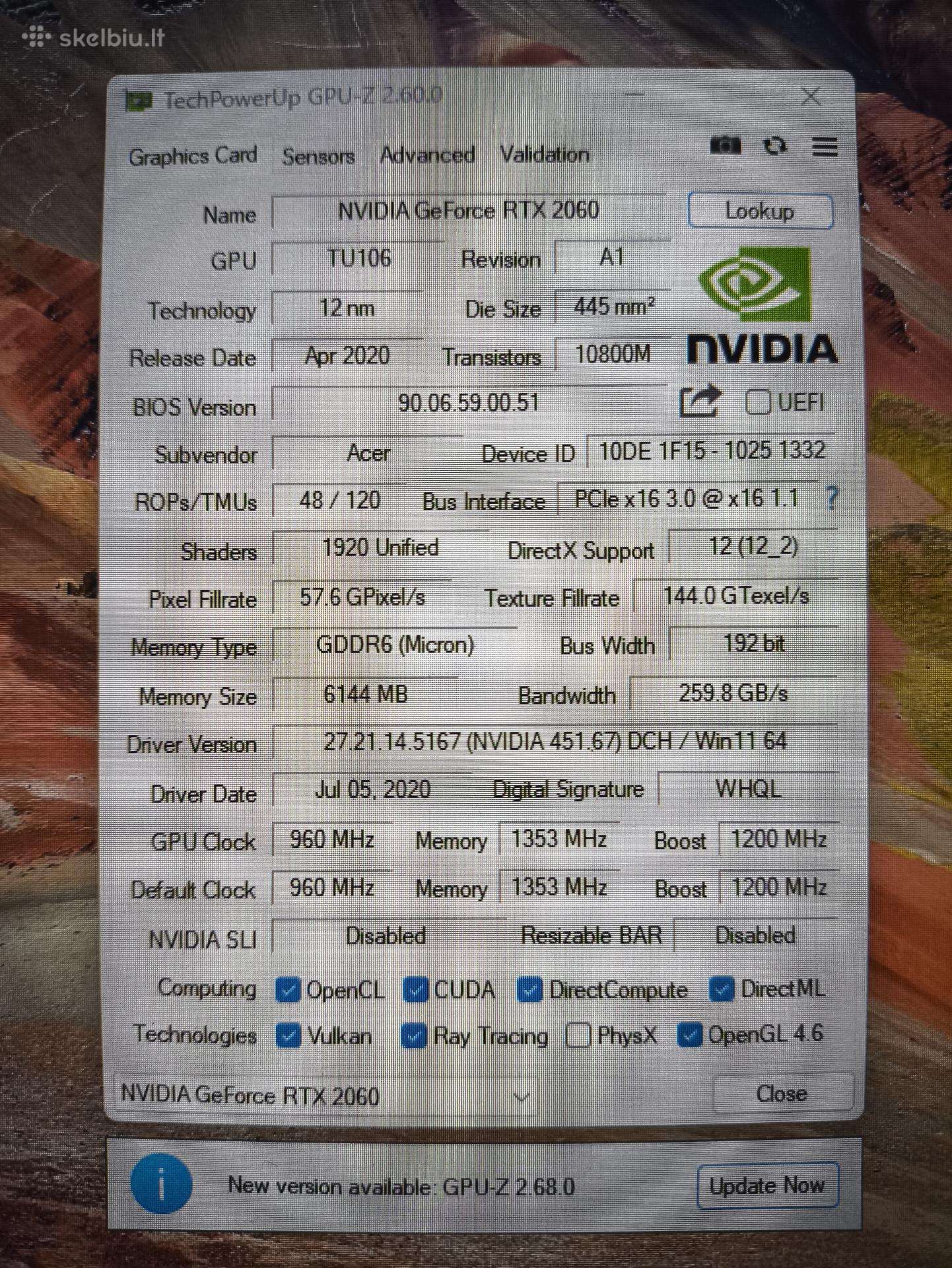 Siūlome įsigyti Acer Nitro 5 AN515-54 , Windows licenzija yra.
