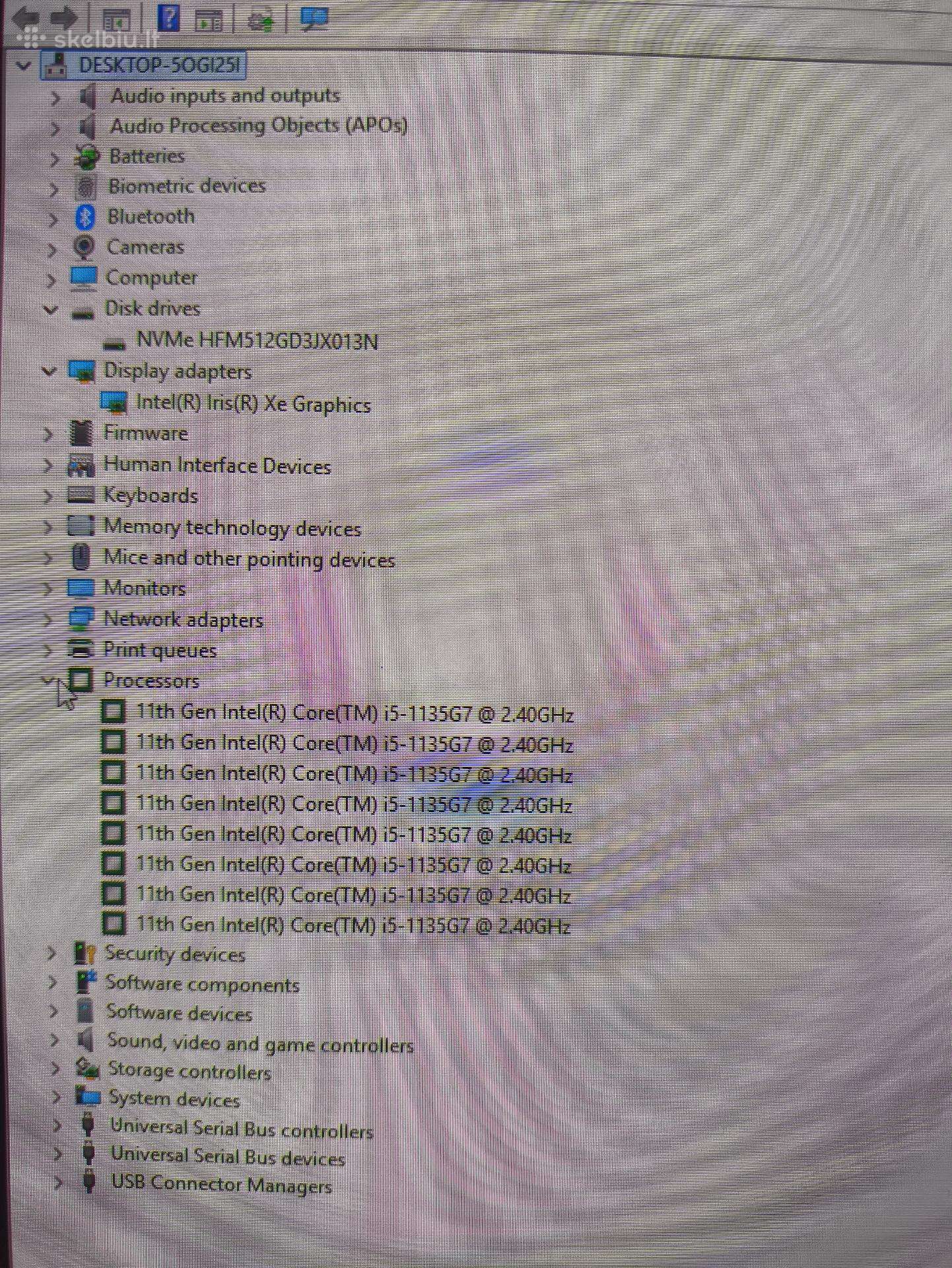 Procesorius Intel i5-1135G7 2.4GHz, Max turbo dažnis 4.2GHz