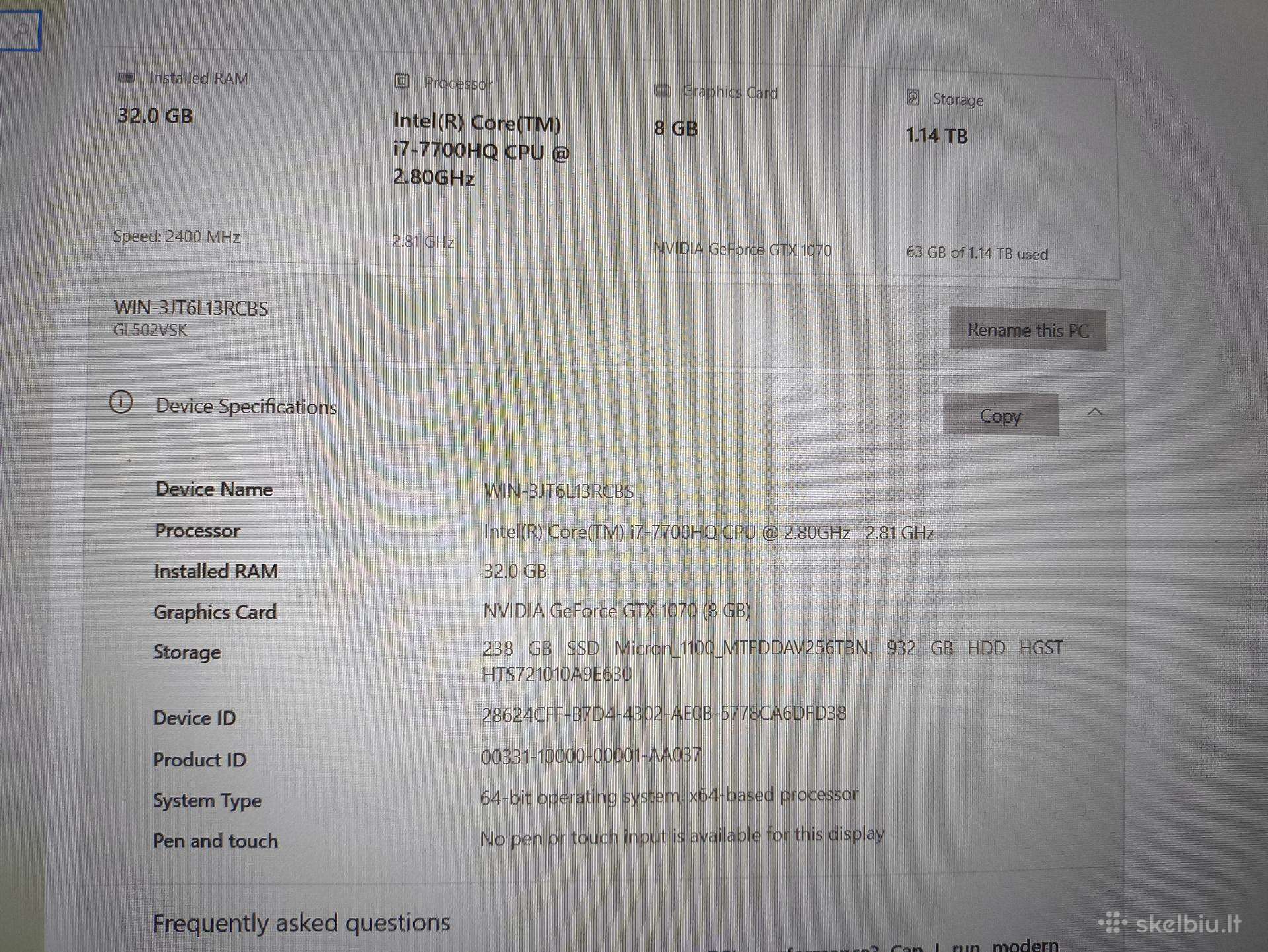 Siūlome įsigyti Asus ROG Strix GL502 , Windows licenzija yra.