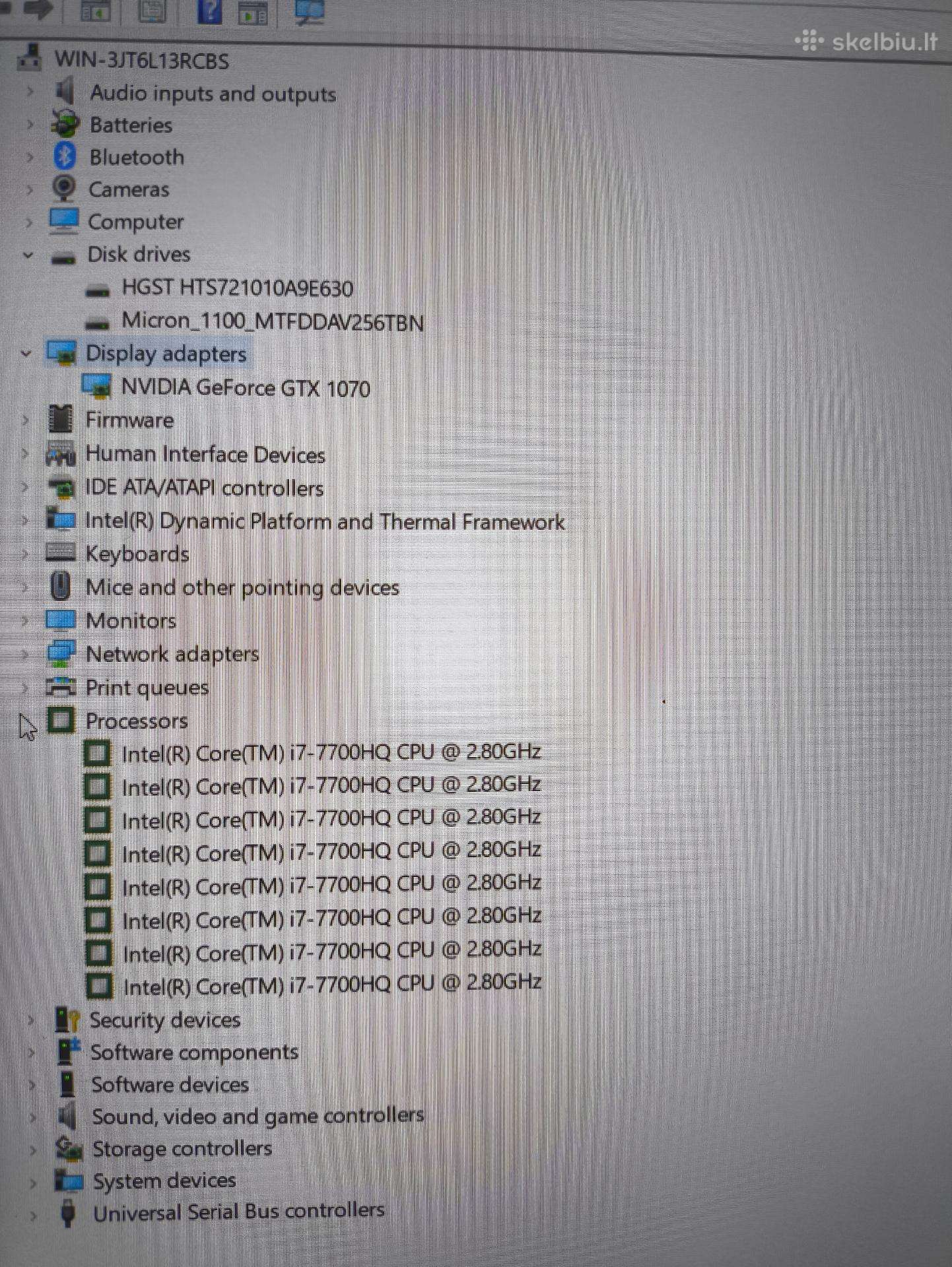 Procesorius I7-7700HQ 2.8GHz Max turbo dažnis 3.8GHz