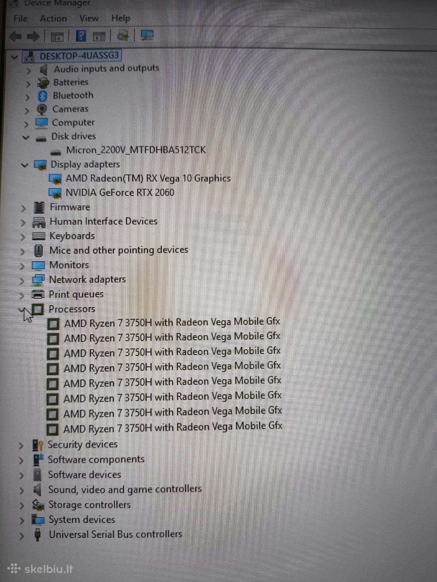 Procesorius Ryzen 7 3750H 2.3GHz Max turbo dažnis 4.0GHz