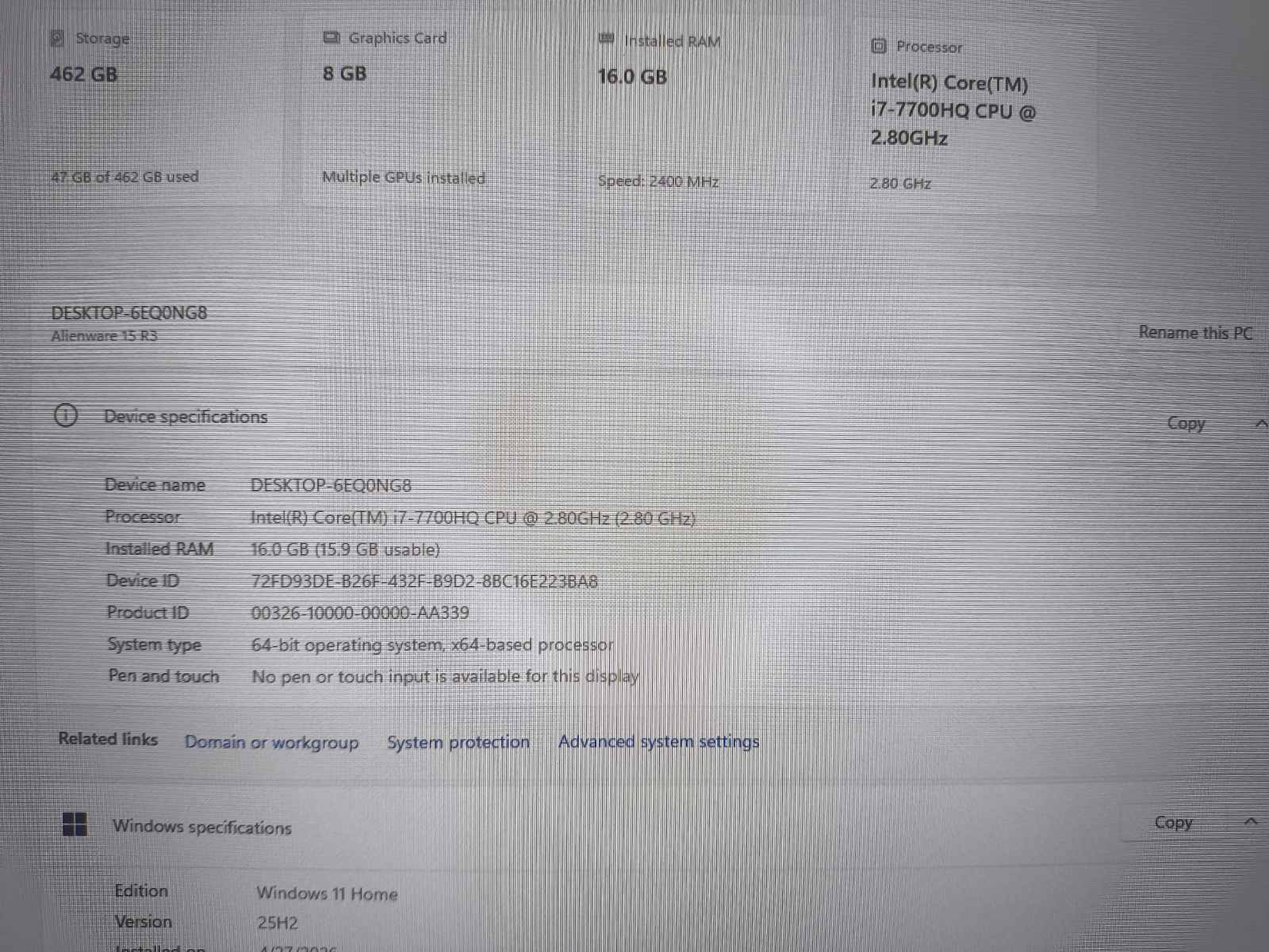 MB ERIDAS parduoda Alienware 15 R3 windows licenzija, windows 11 home surašyta