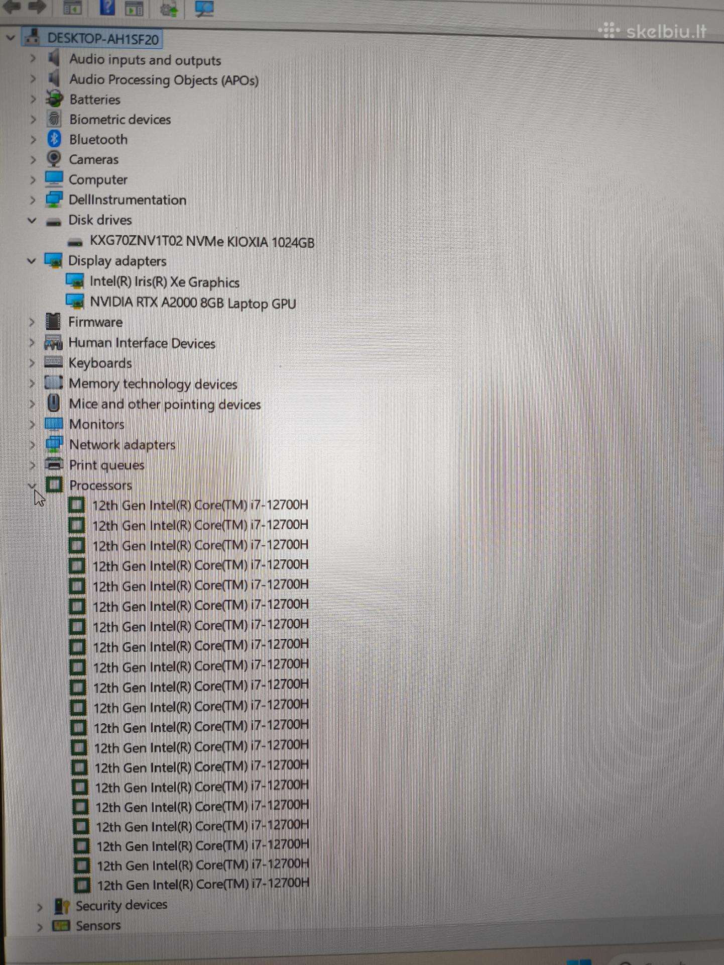 i7-12700H 14 branduolių Max turbo dažnis 4.7GHz