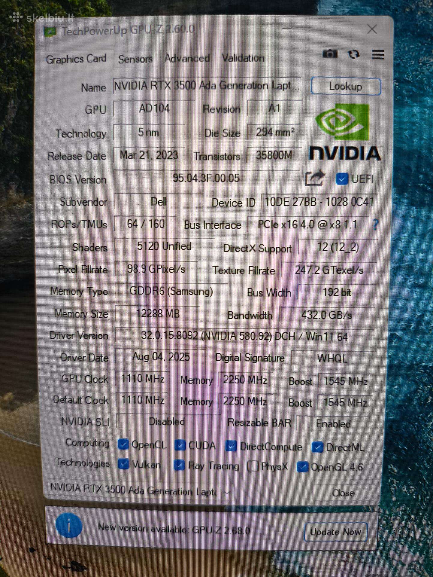 Siūlome įsigyti Dell Precision 7680 , Windows 11 Pro licenzija yra.