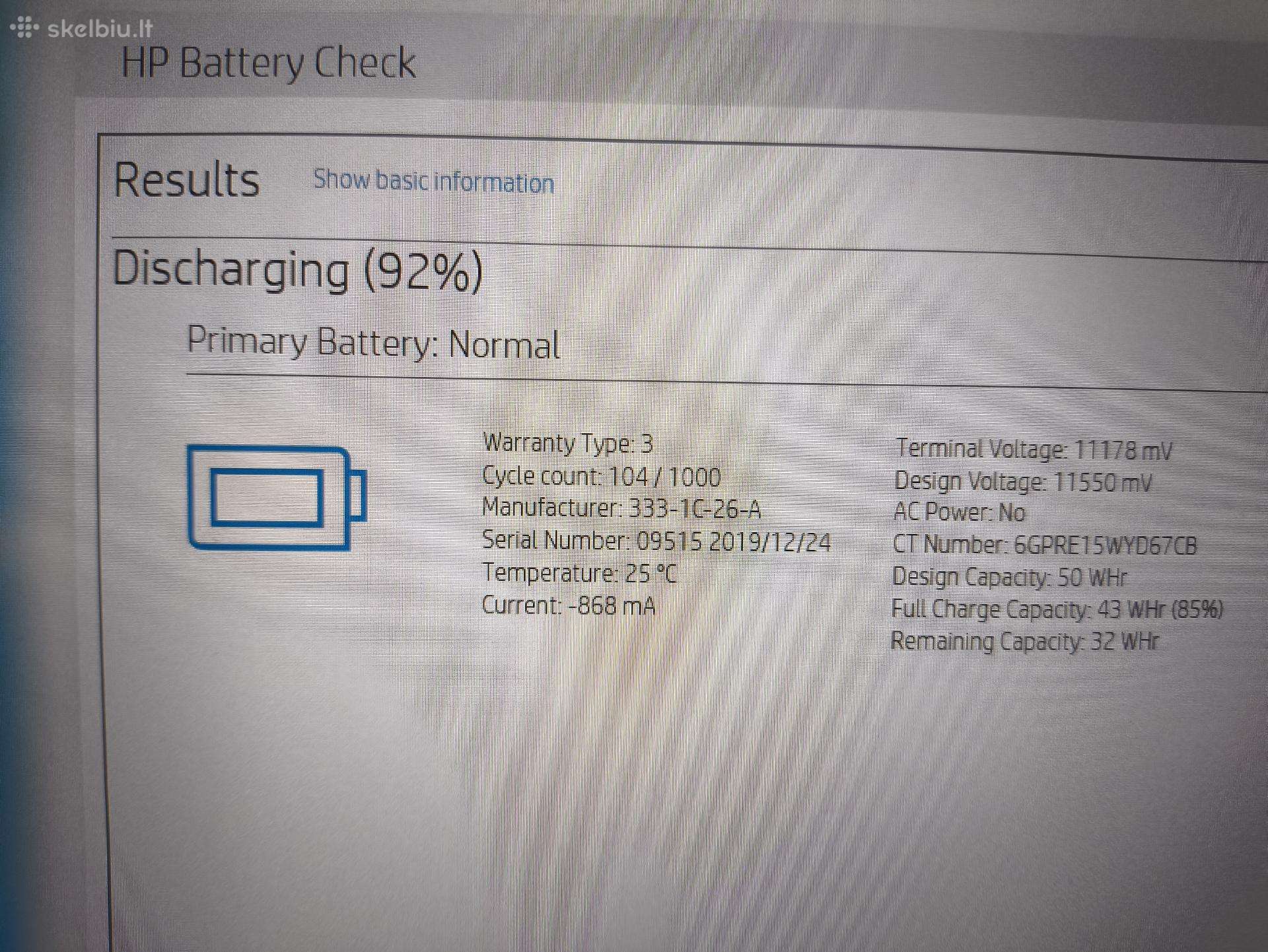 Gera baterija, laiko apie 2-3+ valandas, 15% susidėvėjimas