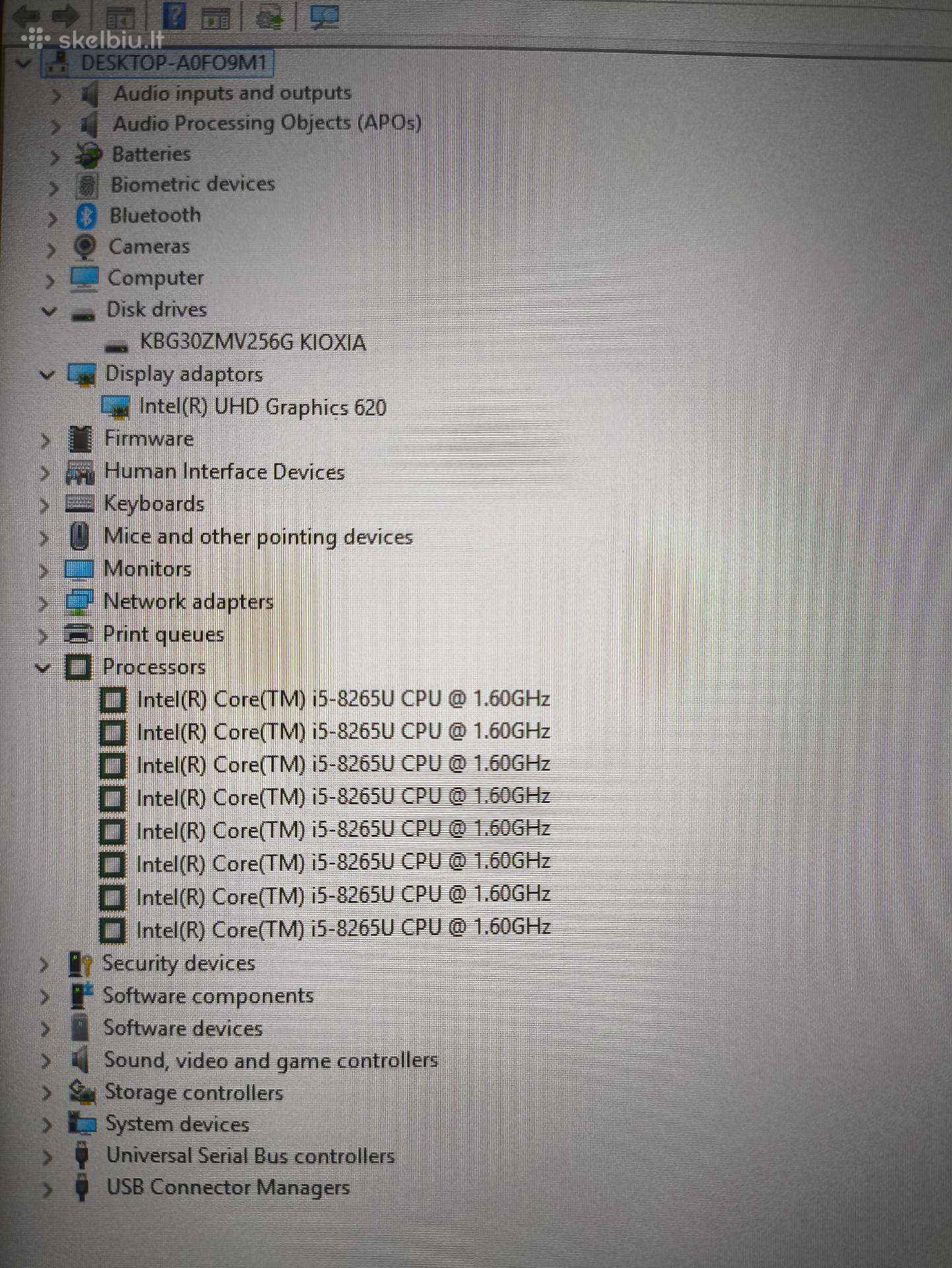 Procesorius Intel i5-8265u 1.6GHz, Max turbo dažnis 3.9GHz