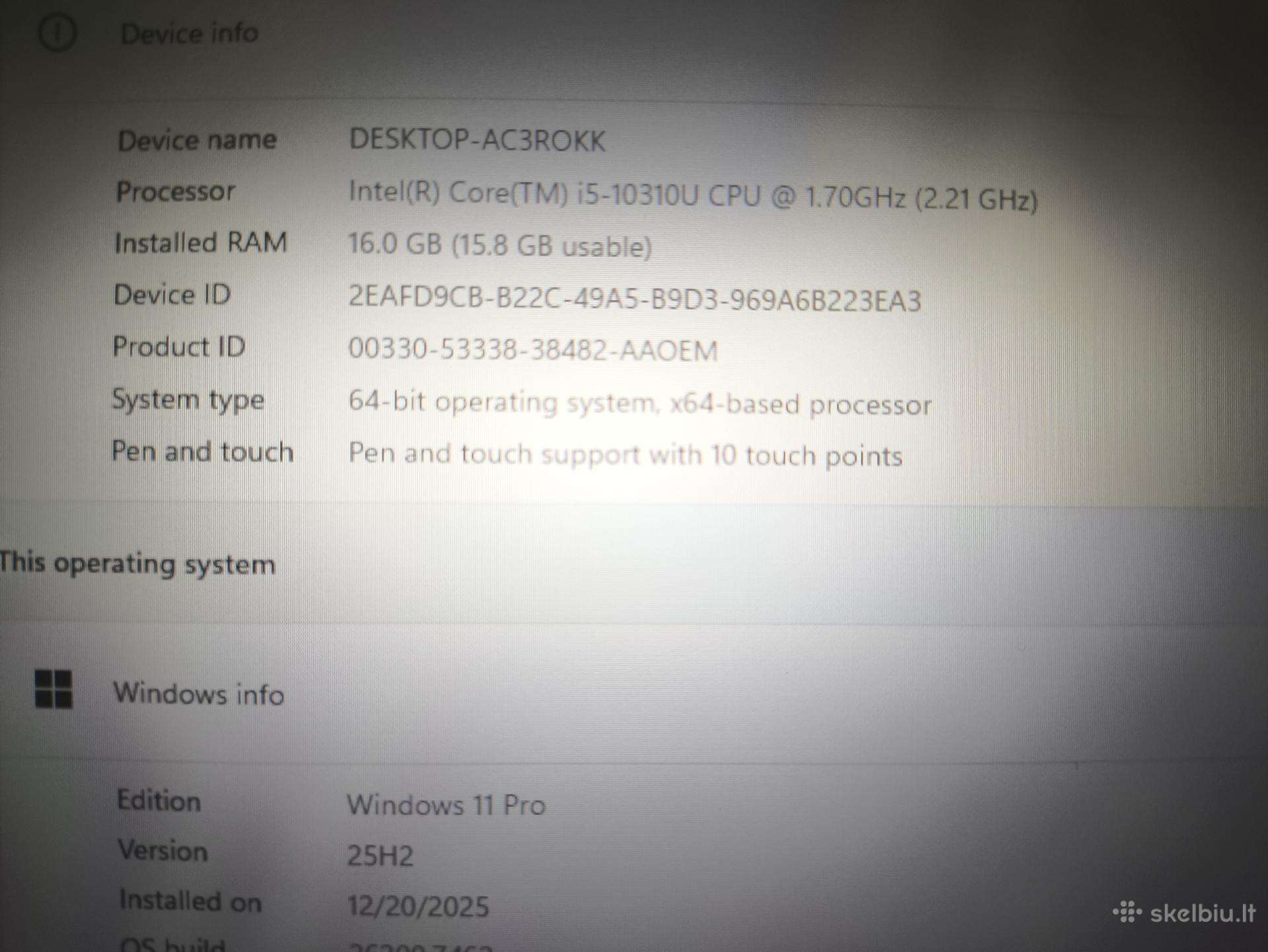 Siuntimas į kitus miestus nemokamas venipak ar omniva paštomatu ( Galime ir kujeriu siųsti ). Komplekte kompiuteris ir įkroviklis. Turime daug kitų kompiuterių savo fizinėje parduotuvėje