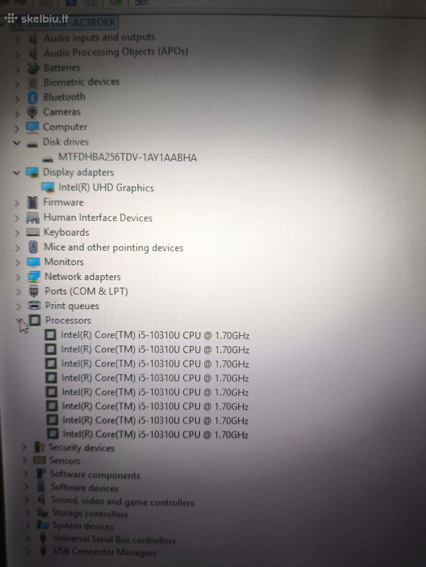 Procesorius Intel i5-10310U 1.7GHz, Max turbo dažnis 4.4GHz