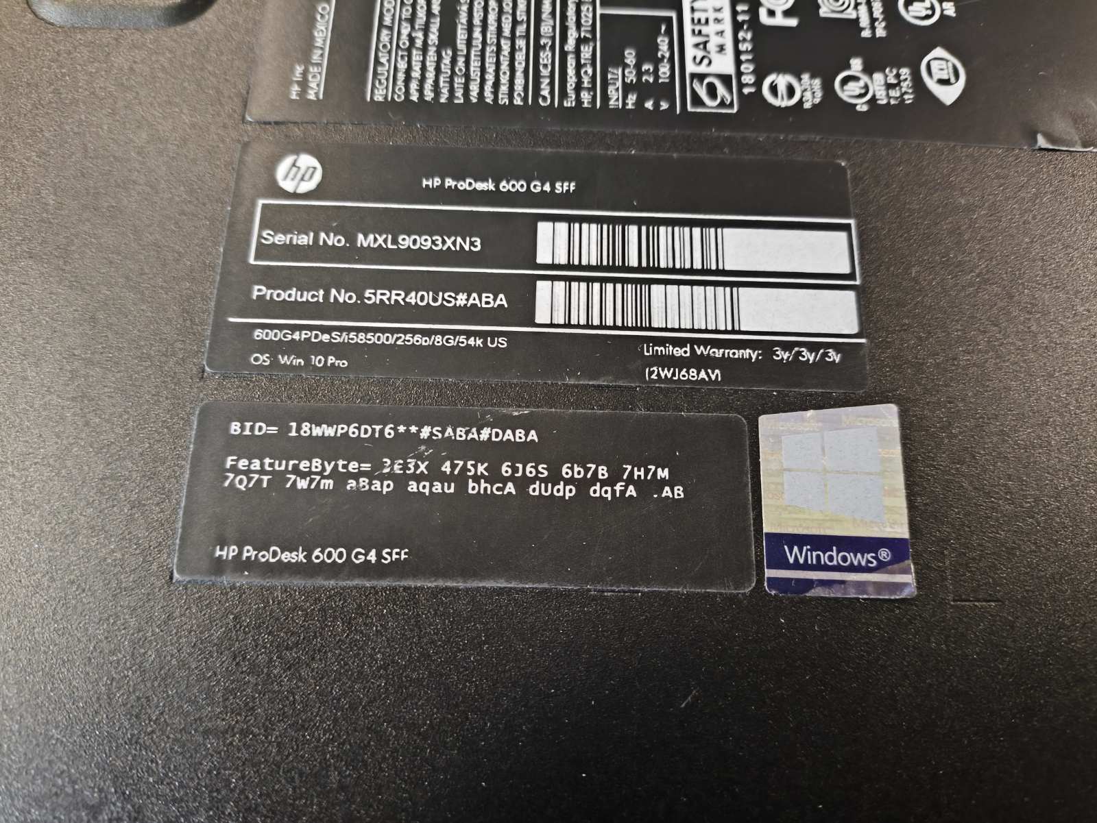 MB Eridas, siūlo darbinį kompiuterį, HP ProDesk 600 G4 Windows Pro licenzijos raktas yra, Windows NEsurašyta
