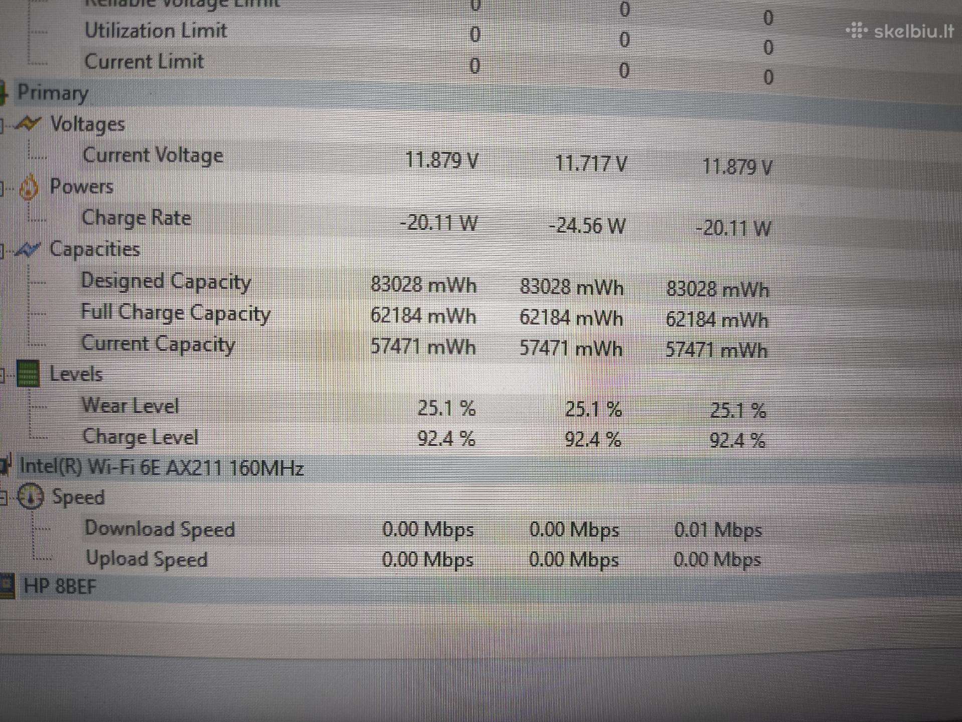 Baterija, laiko apie 3+ valandas, 25% susidėvėjimas