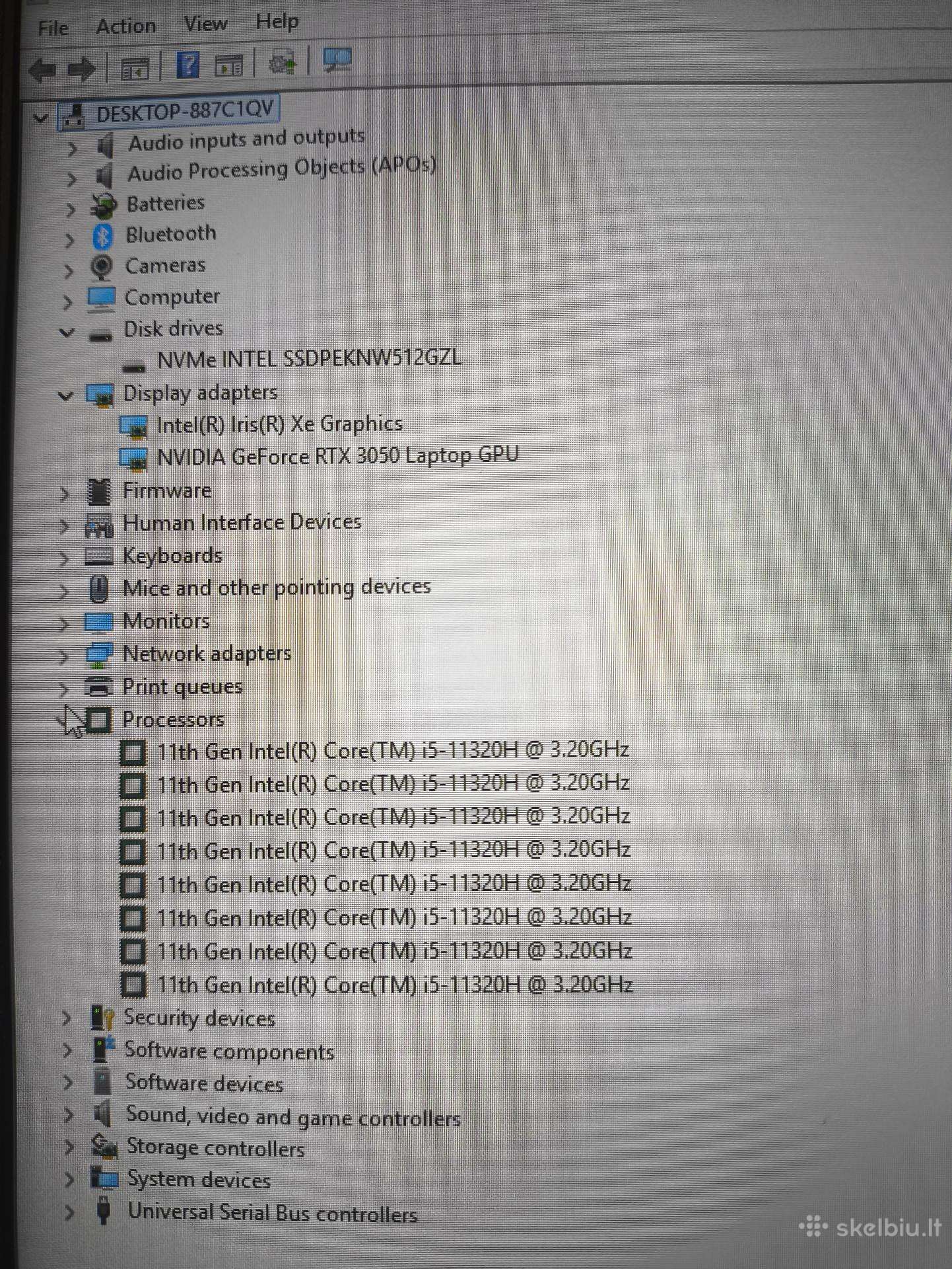 Procesorius Intel i5-11320H 3.2GHz, Max turbo dažnis 4.5GHz