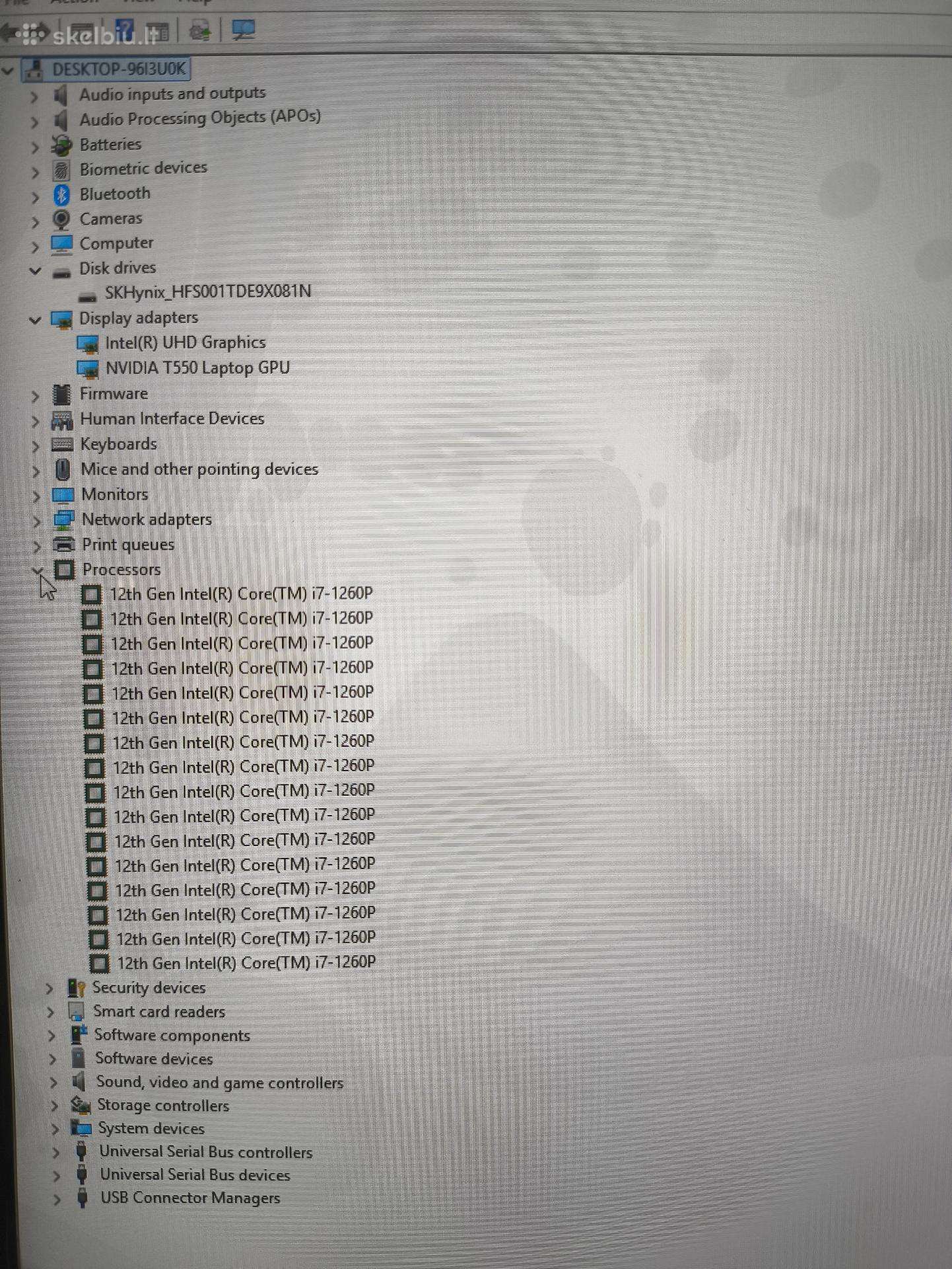 Intel i7-1260P 12 Core, Max turbo dažnis 4.7GHz