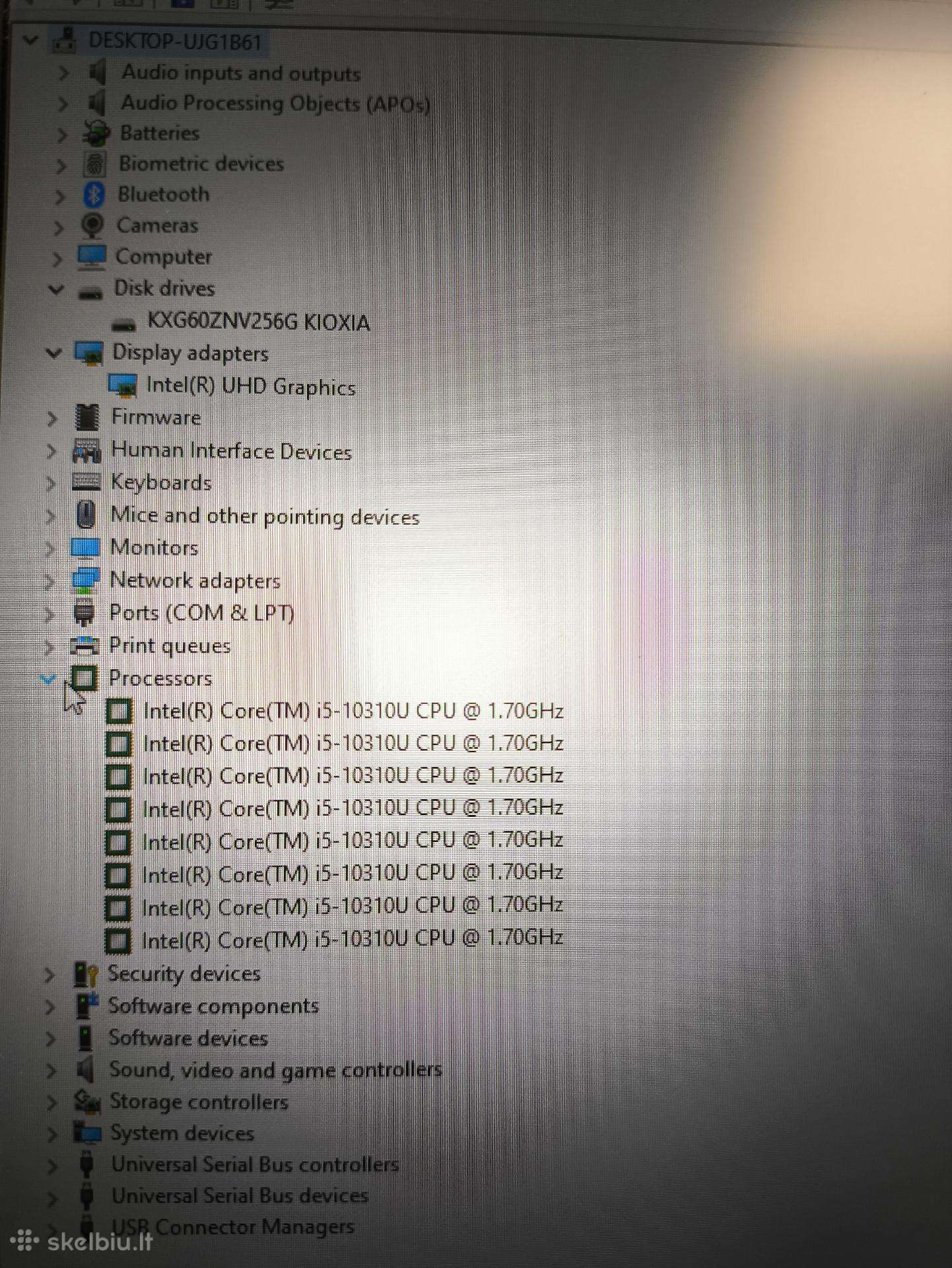 Procesorius Intel i5-10310U 1.7GHz, Max turbo dažnis 4.4GHz