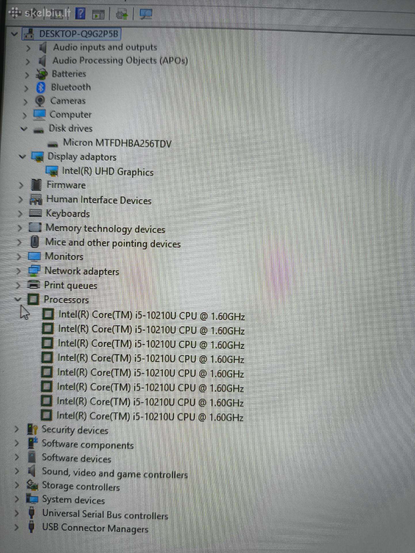 Procesorius Intel i5-10210U 1.6GHz, Max turbo dažnis 4.2GHz