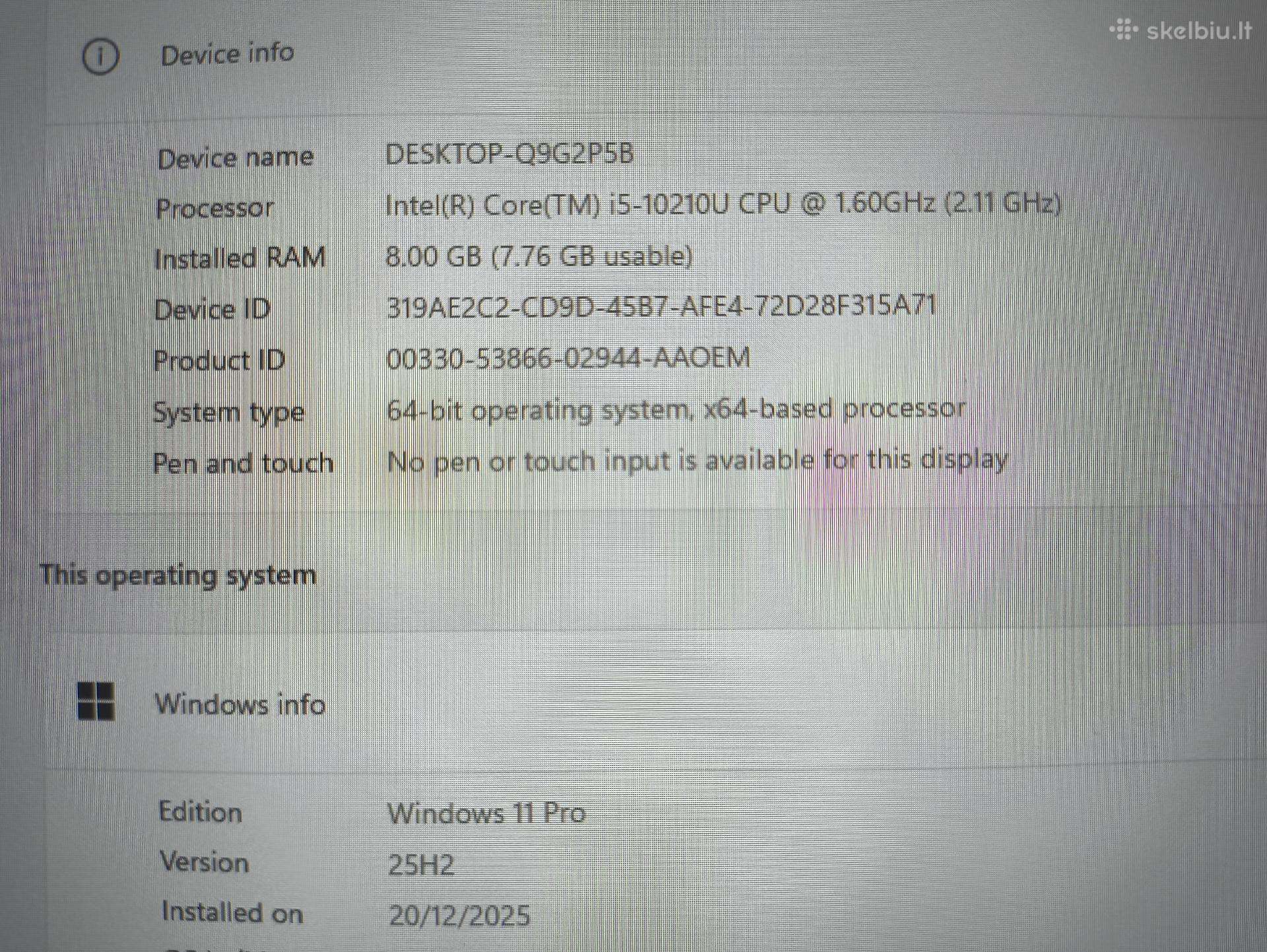Siuntimas į kitus miestus nemokamas venipak ar omniva paštomatu ( Galime ir kujeriu siųsti ). Komplekte kompiuteris ir įkroviklis. Turime daug kitų kompiuterių savo fizinėje parduotuvėje