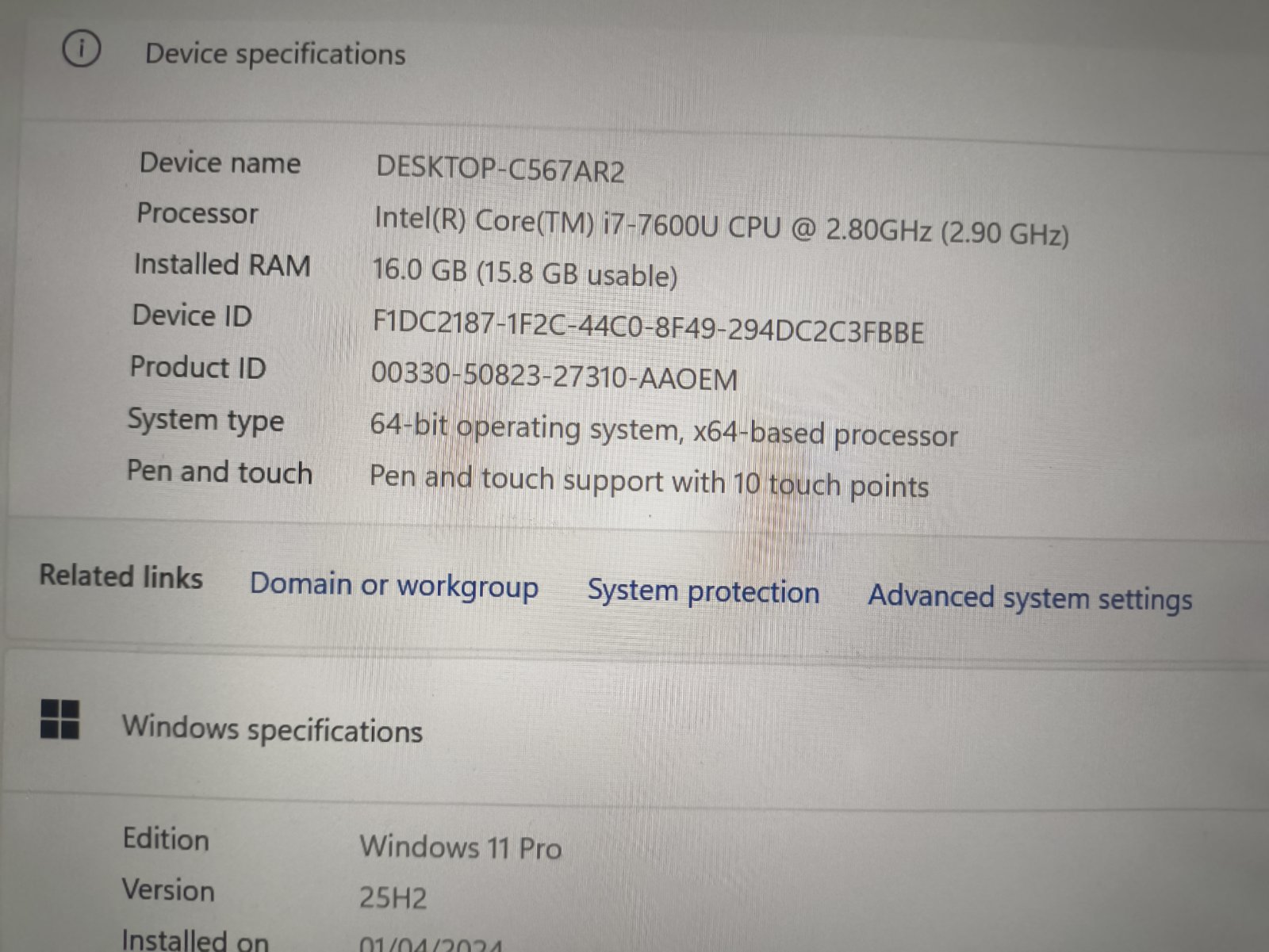 i7-7600U 2.8GHz, Max turbo dažnis 3.9GHz
