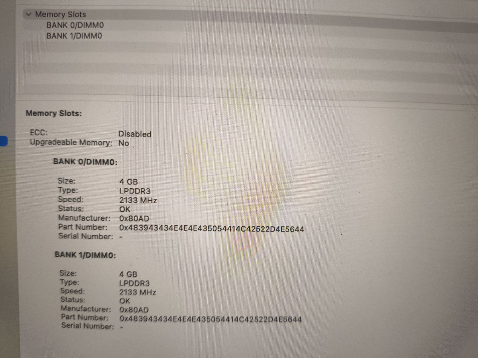 RAM 8GB LPDD3 2133MHz