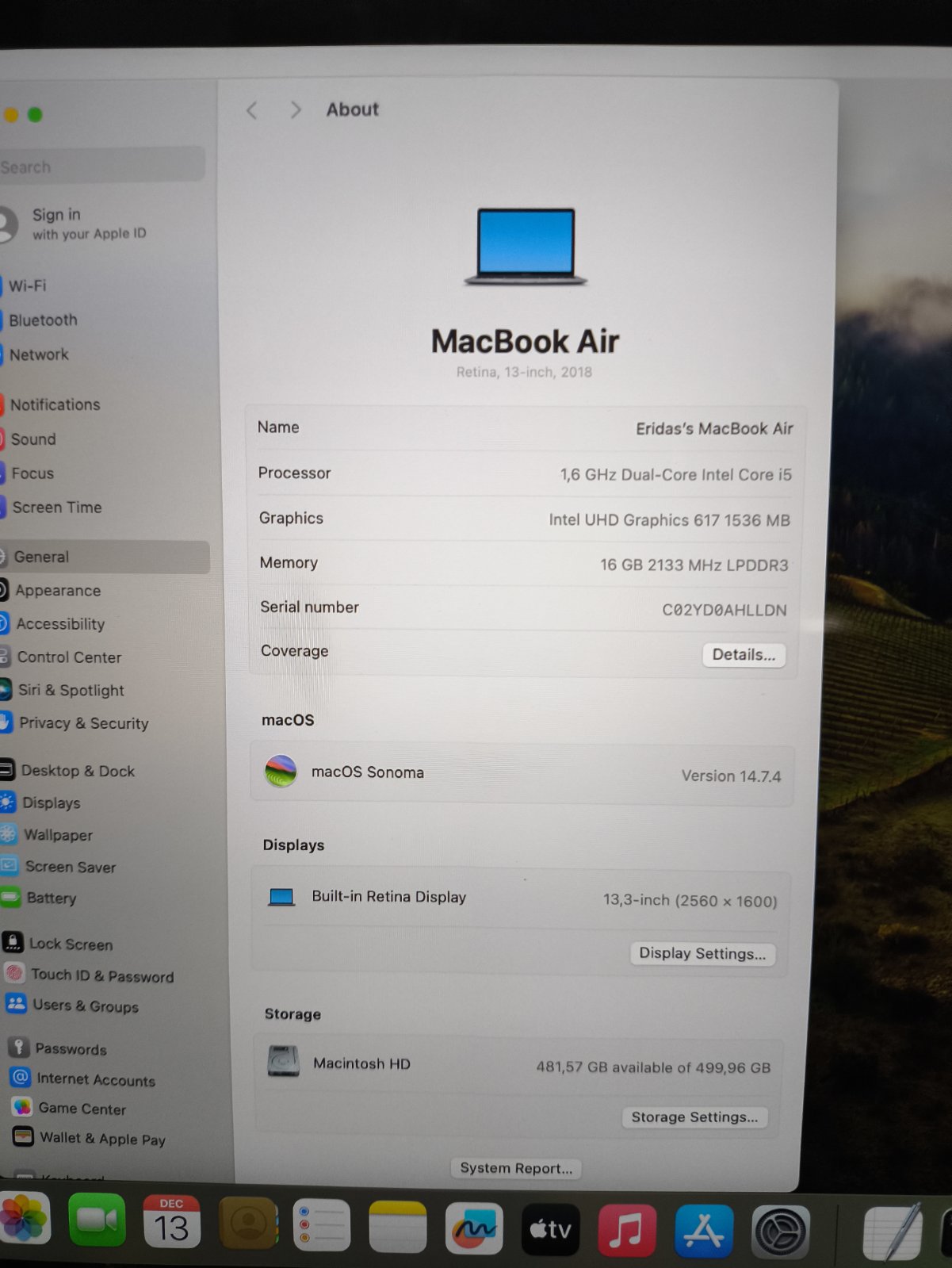 Eridas, siūlo įsigyti MacBook Air „Core i5″ 1.6 13” (Late 2018)