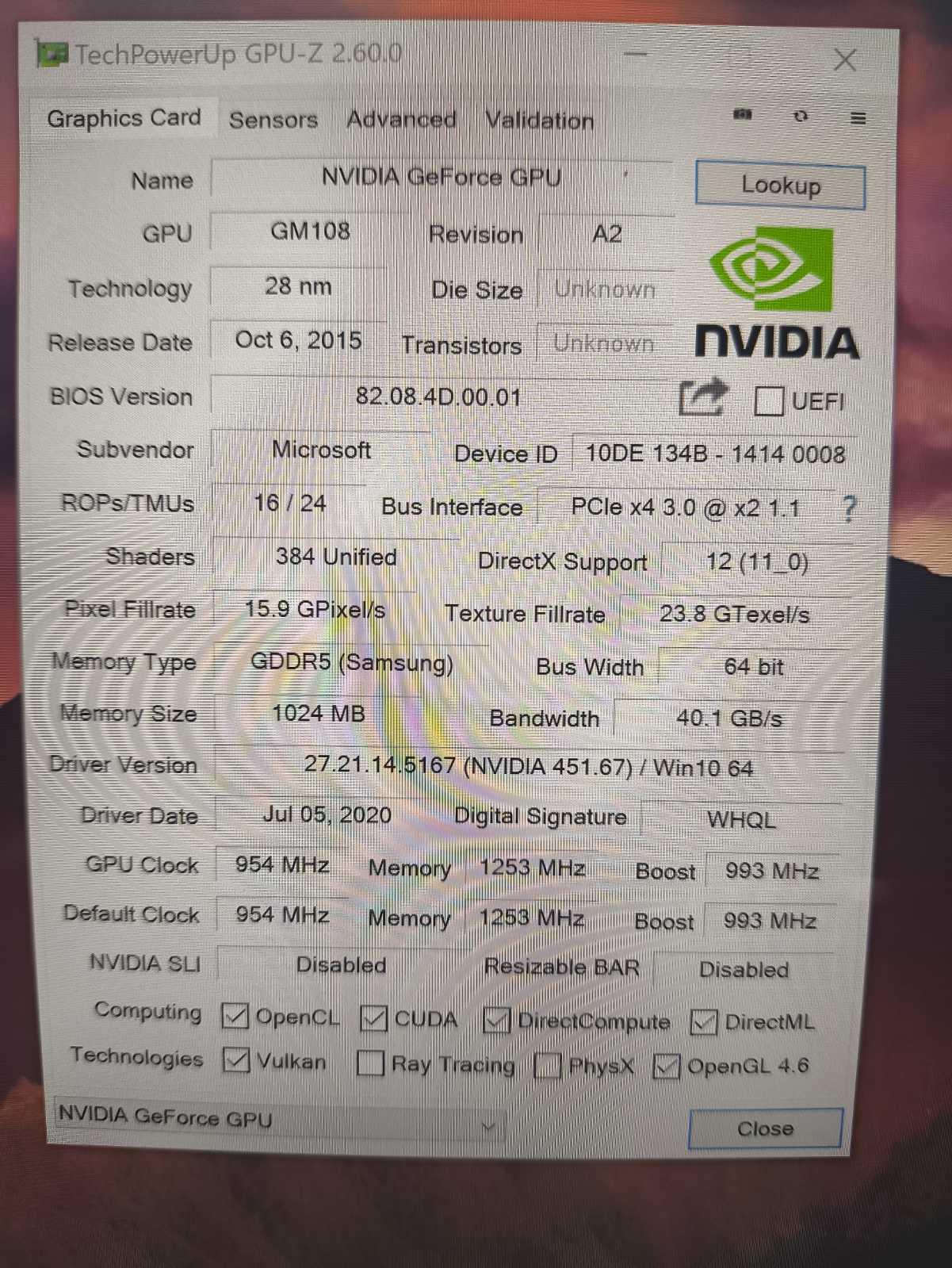 Vaizdo plokštė Intel UHD + Nvidia Geforce 1GB