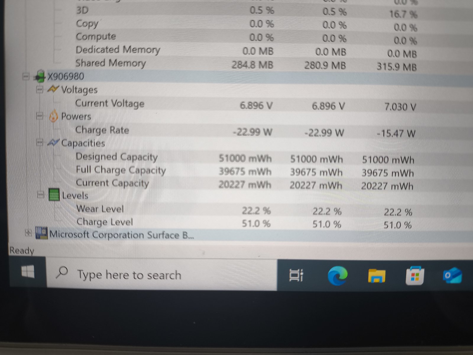 Gera baterija, laiko apie 1-2+ valandas, 22% susidėvėjimas, esanti kompiuteryja su klaviatūra