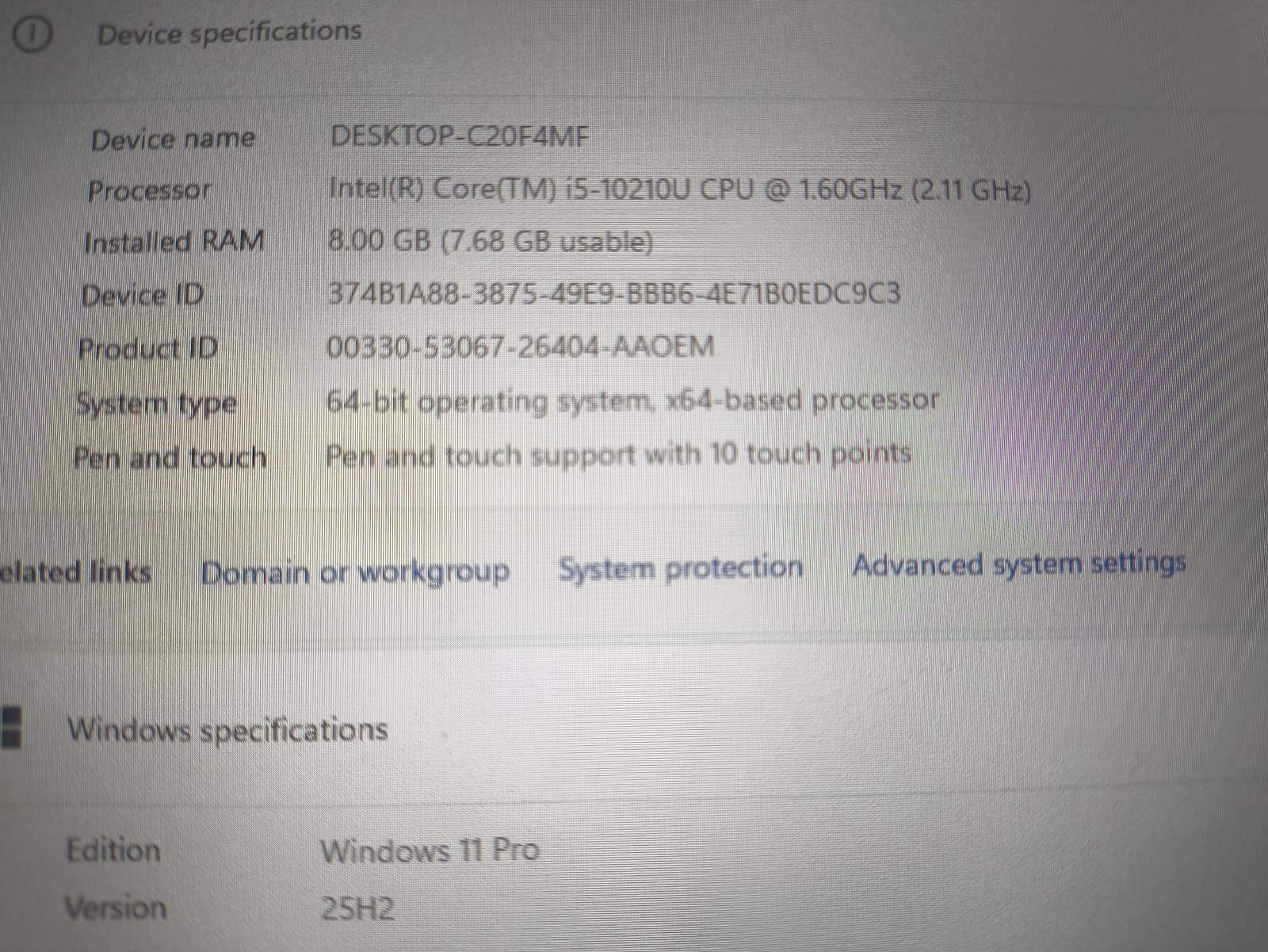 Procesorius Intel i5-10210u 1.6GHz, Max turbo dažnis 4.2GHz